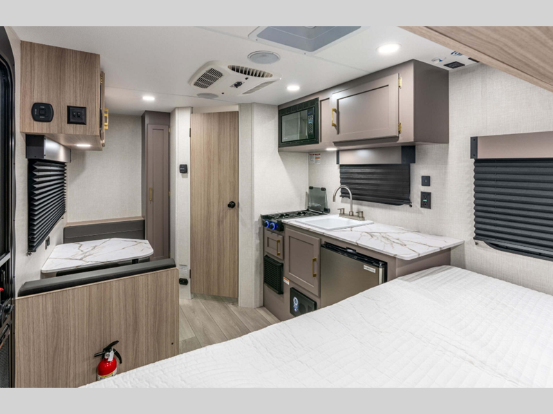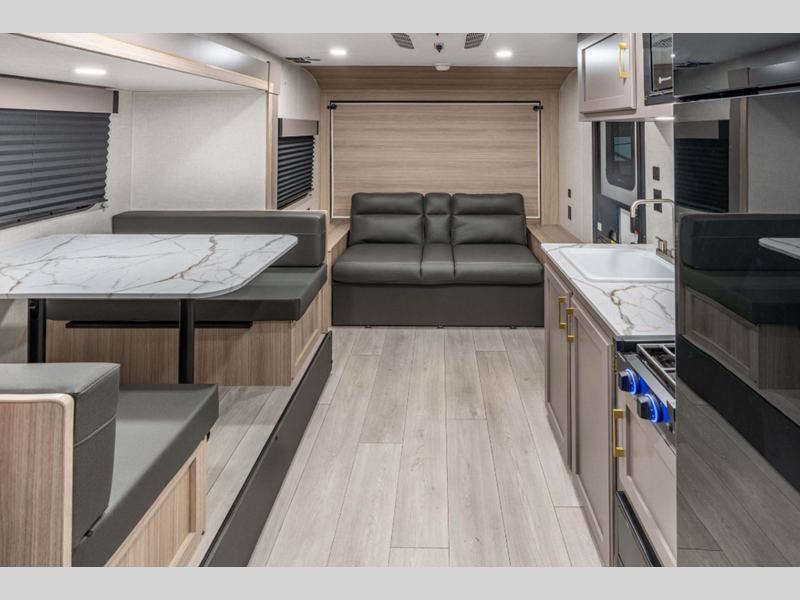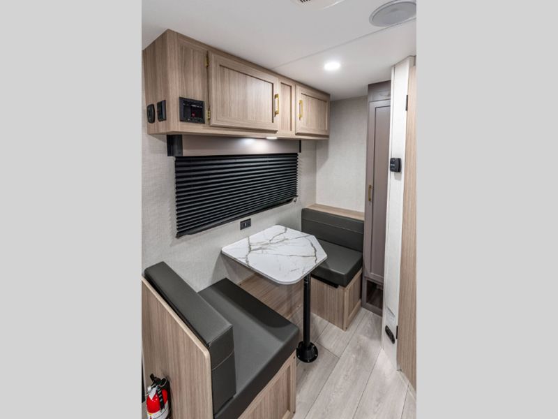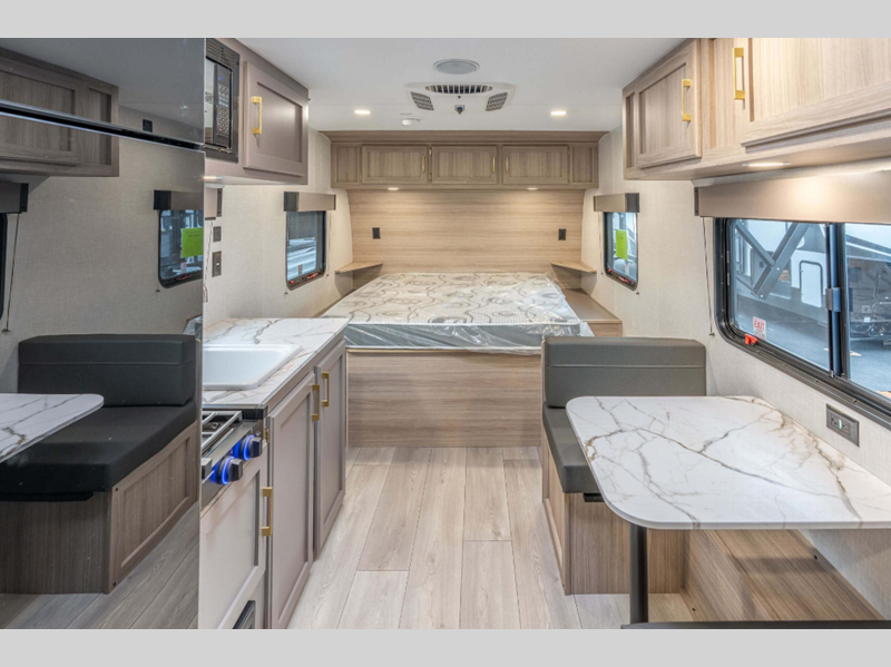 Each model includes residential grade linoleum, tons of storage space, and rail-style cabinet doors with modern handles. You will appreciate the digital media stereo with Bluetooth, USB ports for your phone or tablet, and an omnidirectional HDTV antenna with Wi-Fi prep if you need to get some work done while you're away from home. The Sportsmen Classic has R-7 insulation in the sidewalls, tinted windows, and self-adjusting electric brakes.